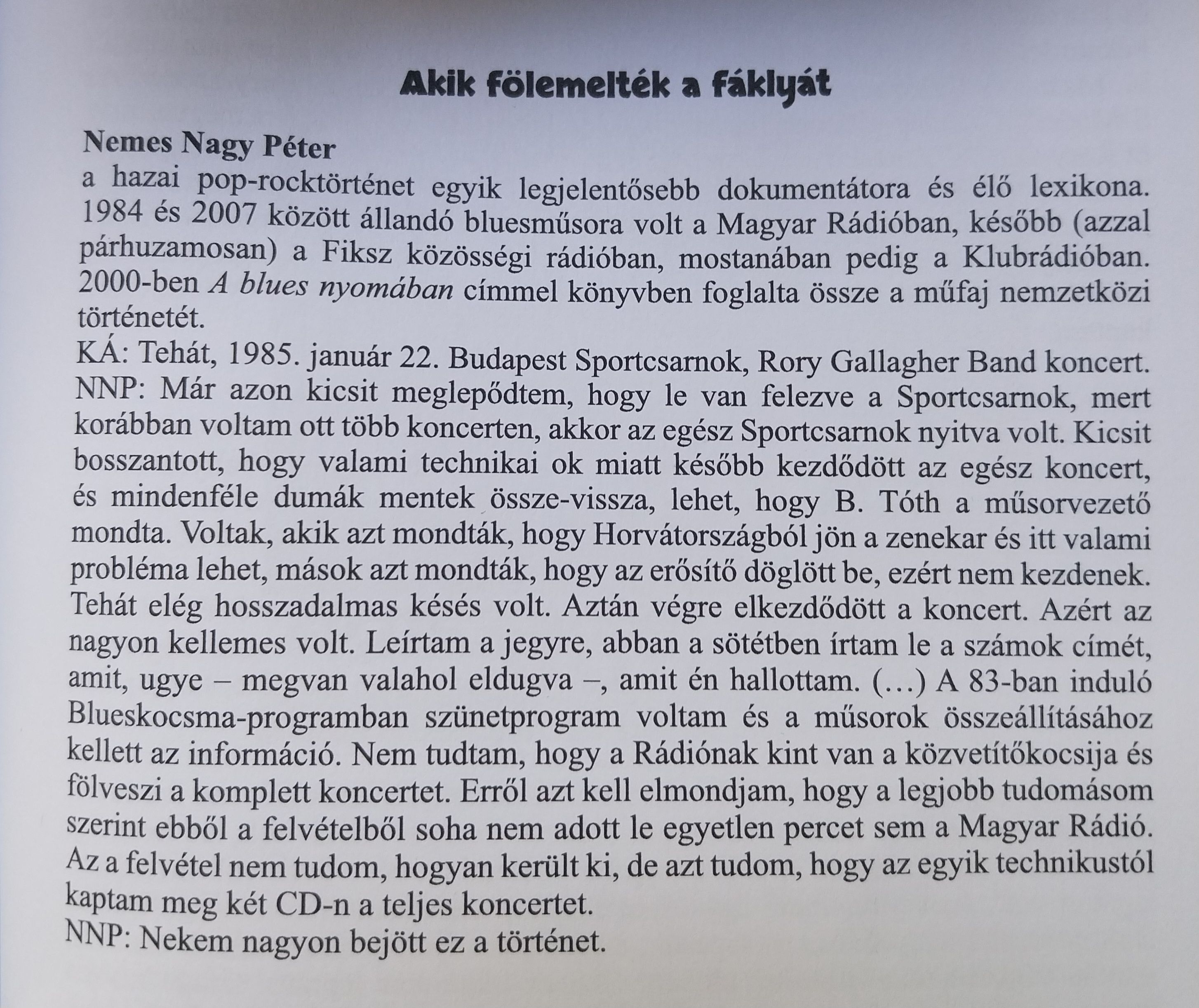 Rory Gallagher koncert emlékek